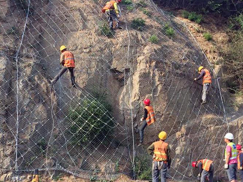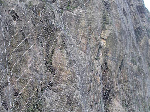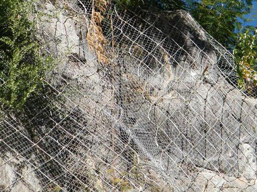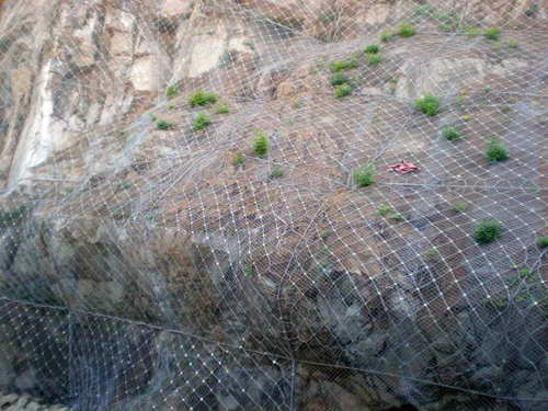 主動(dòng)防護(hù)系統(tǒng)是以鋼絲繩網(wǎng)為主的各類(lèi)柔性網(wǎng)覆蓋包裹在所需防護(hù)斜坡或巖石上,以限制坡面巖石土體的風(fēng)化剝落或破壞以及危巖崩塌(加固作用),或?qū)⒙涫刂朴谝欢ǚ秶鷥?nèi)運(yùn)動(dòng)(圍護(hù)作用)。