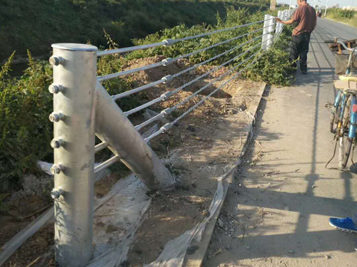 端部立柱是纜索護欄的主要配件,每段中應(yīng)用兩支,它的作用就是用來拉緊中間鋼絲繩不會過松。